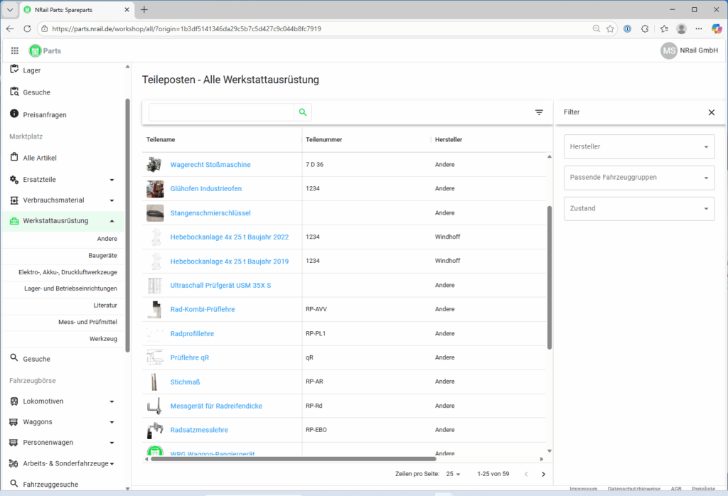 parts.nrail.de ist Ihre zentrale Anlaufstelle für Ersatzteile, Verbrauchsmaterial und Werkstattausrüstung im Bahnsektor. Statt sich durch einzelne Kataloge und Excel-Listen zu kämpfen, finden Sie hier alle relevanten Komponenten übersichtlich gebündelt, strukturiert nach Fahrzeugtyp, Baugruppe und Hersteller.