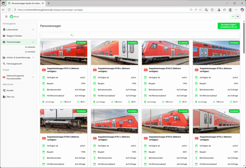 NRail betreibt Deutschlands größten Marktplatz für gebrauchte Schienenfahrzeuge.